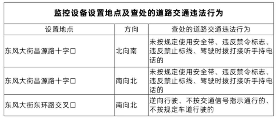 附:监控设备设置地点及查处的道路交通违法行为: